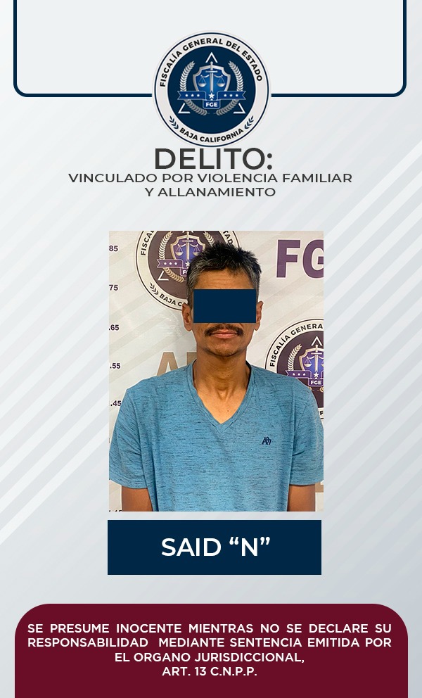 La Fiscalía General del Estado, a través de la Unidad Foránea de San Felipe, logró la vinculación a proceso y dos meses de plazo para el cierre de la investigación en contra de un acusado por agredir a sus familiares y allanamiento de morada.