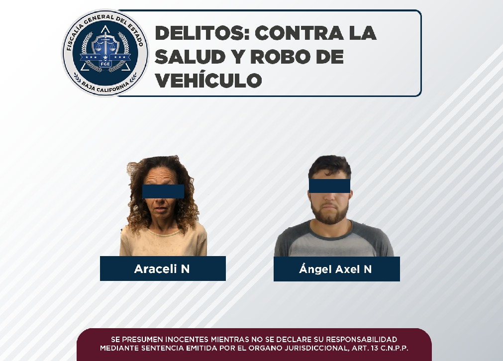 Oficiales de la Agencia Estatal de Investigación (AEI) cumplimentaron dos órdenes de aprehensión por los delitos contra la salud en su modalidad de narcomenudeo y por robo de vehículo ejecutado con violencia, informó la Fiscalía Regional de Playas de Rosarito.