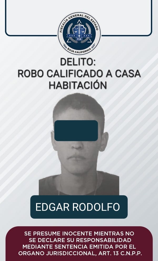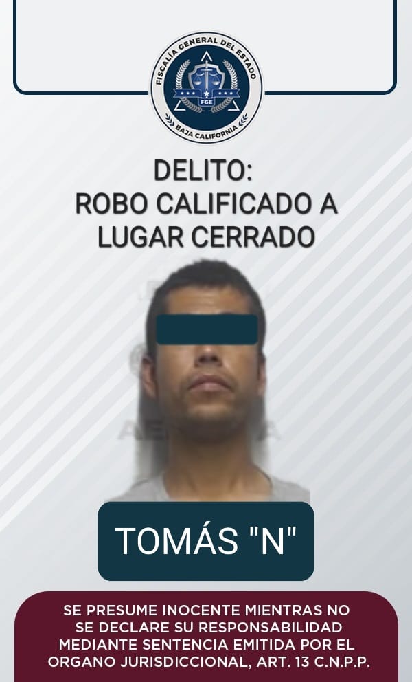 La Fiscalía Regional de Ensenada, por medio de datos de prueba expuestos por el Ministerio Público, logró auto de vinculación a proceso y medida cautelar de prisión preventiva contra cuatro hombres por el delito de robo en distintas modalidades.