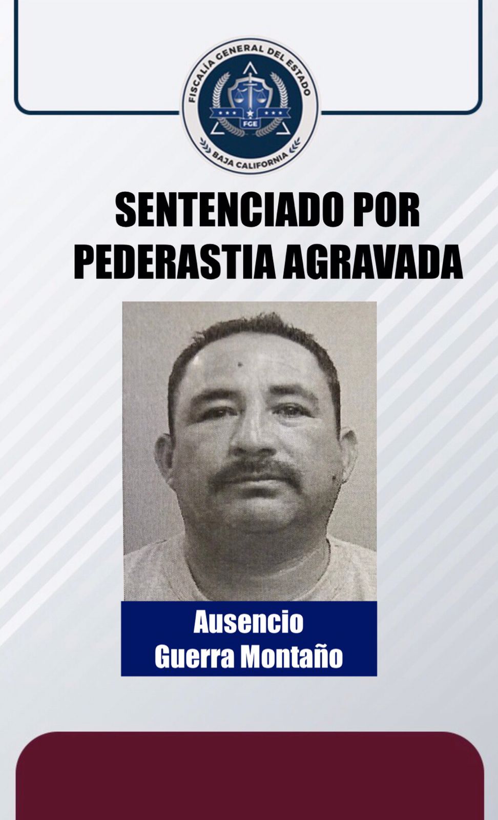 La Fiscalía General del Estado, a través de la Fiscalía Especializada en Delitos Contra la Mujer por Razón de Género, logró una sentencia condenatoria, en contra de Ausencio Guerra Montaño, por el delito de Pederastia Agravada.