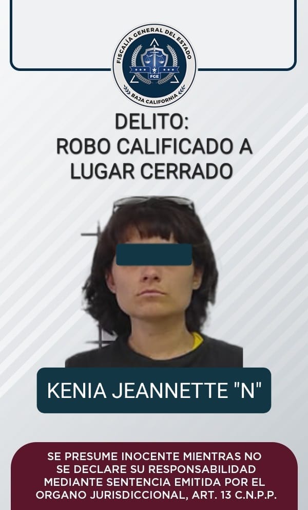 El 27 de mayo del año en curso, agentes de la AEI aseguraron a Kenia Jeannette “N”, por contar con orden de aprehensión por el delito de robo calificado a lugar cerrado, bajo la causa penal 00963/2019.