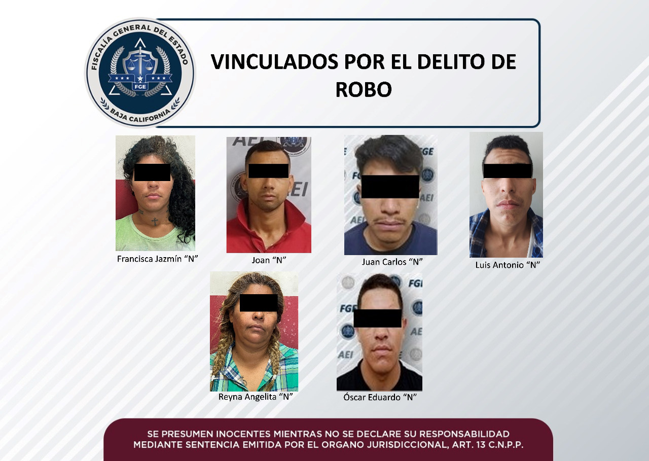 La Fiscalía Regional de Mexicali, a través de la Unidad de Investigación de Delitos con Detenido Poniente y Robos Poniente, logró vincular a proceso en audiencias por separado a seis imputados por robos.