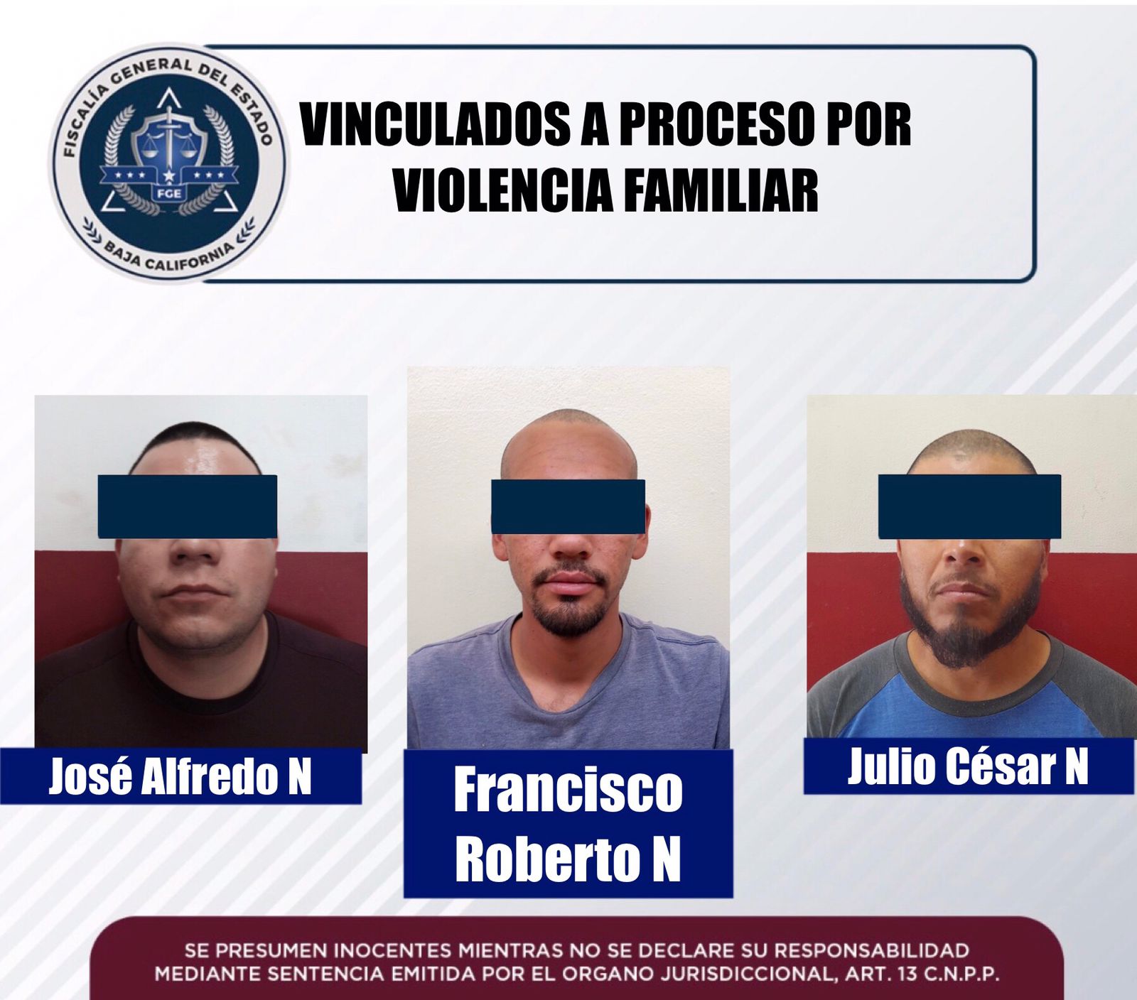 La Fiscalía Regional de Mexicali, logró la vinculación a proceso penal de tres hombres en audiencias por separado, como resultado de la integración de las carpetas de investigación a cargo de la Unidad con Detenidos Poniente, por el delito de Violencia Familiar.