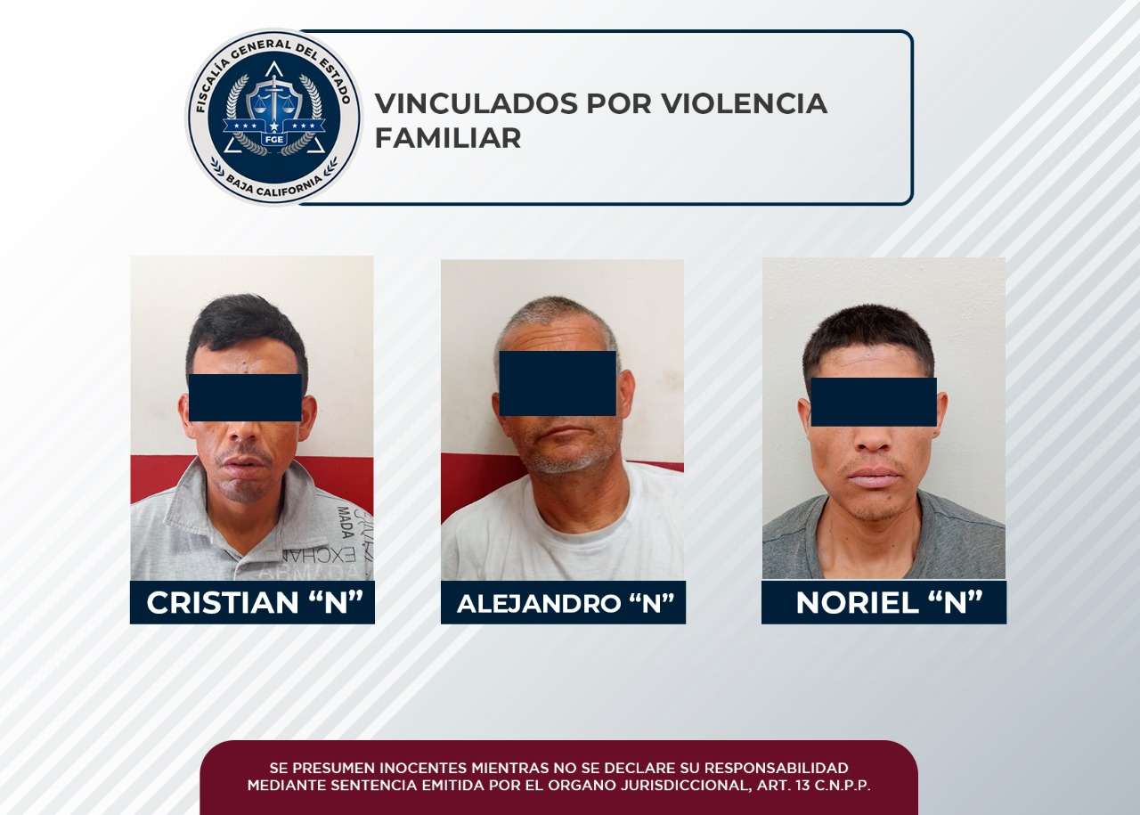 La Fiscalía Regional de Mexicali, a través de la Unidad de Investigación de Delitos con Detenidos Poniente, logró la vinculación a proceso de tres hombres acusados de agredir a sus familiares.