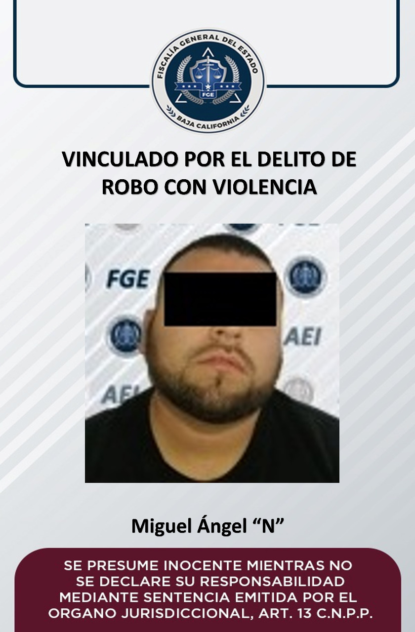 La Fiscalía Regional de Mexicali, a través de la Unidad de Investigación de Delitos de Robo Poniente, logró nueva vinculación a proceso en contra Miguel Ángel “N alias “El Chicano”, acusado de participar en el violento robo.