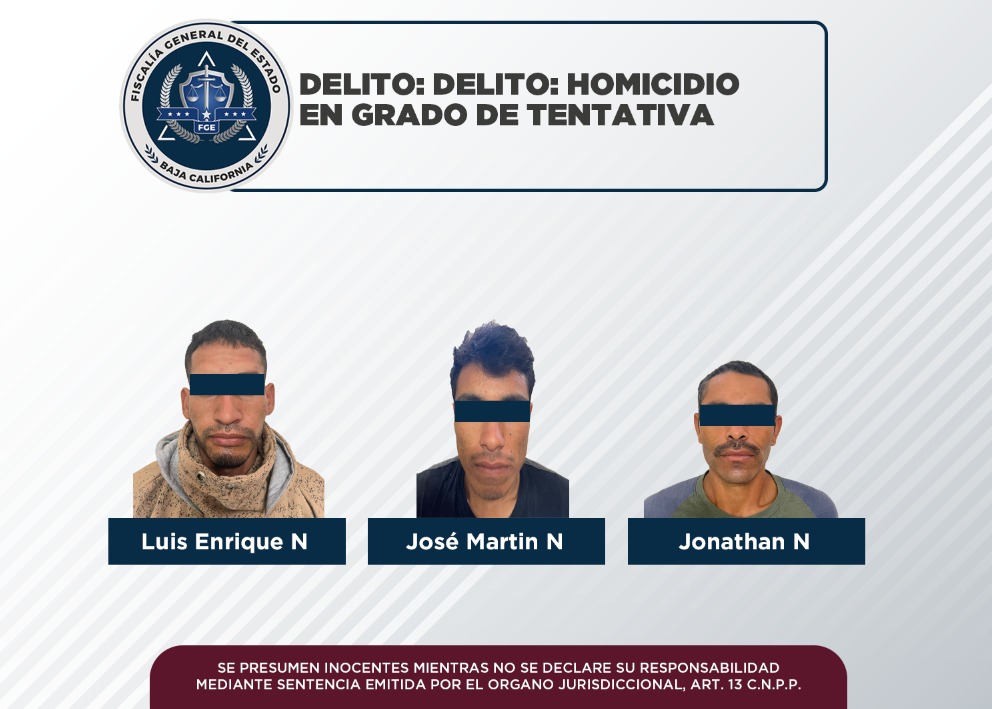 En una acción coordinada entre elementos de la Agencia Estatal de Investigación, y el Ministerio Público de la Fiscalía Especializada en Delitos Contra la Vida, se logró el aseguramiento en flagrancia delictiva, de José Martín “N”, Luis Enrique “N”, y Jonathan “N”, luego de perpetrar al parecer un intento de homicidio el pasado 6 de junio de 2022.