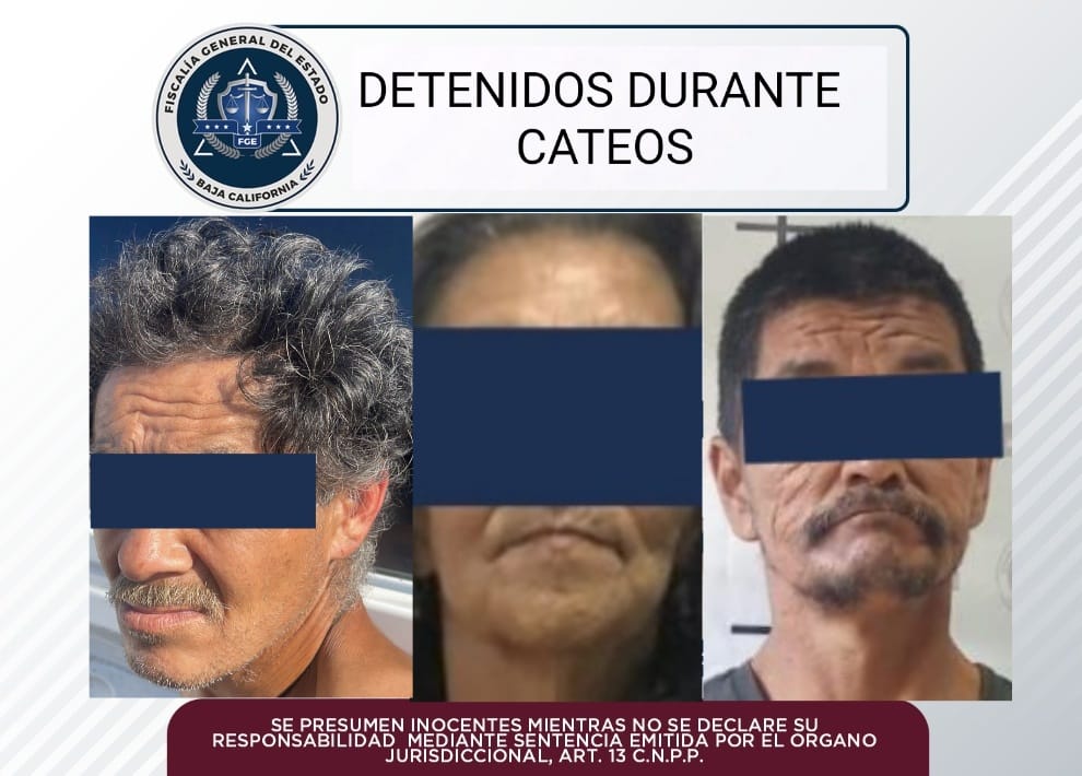 Tres detenidos, el decomiso de un arma abastecida y diversos narcóticos, resultado de cateos de la FGE en Ensenada