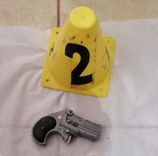 - Arma corta color gris, marca Cobra, calibre 38 especial.