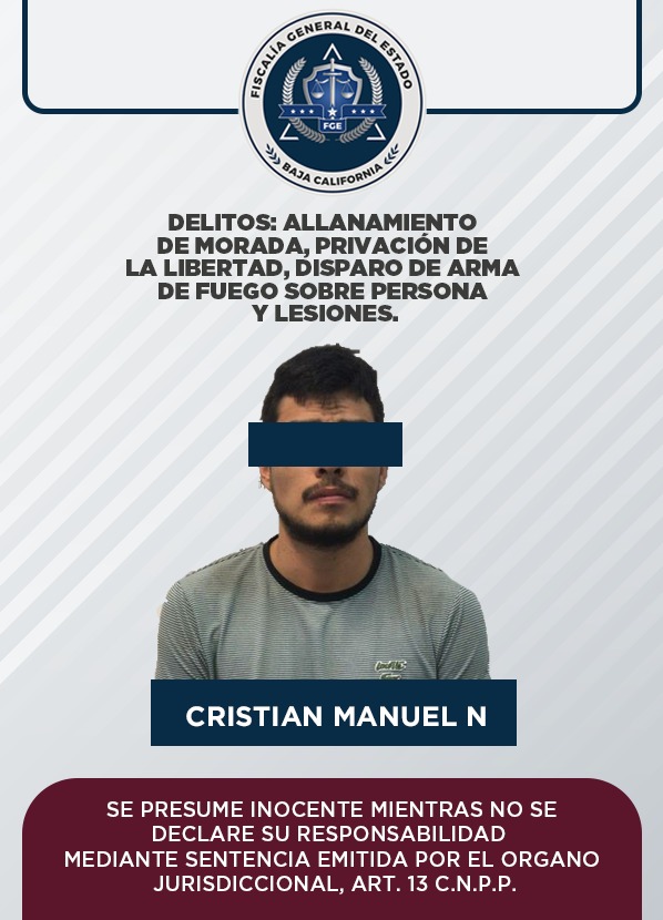 De acuerdo a la investigación de los hechos, el pasado 13 de junio de 2022 en Tijuana, Cristian Manuel “N”, habría cometido cuatro diferentes tipos de delito en su actuación, siendo allanamiento de morada, privación ilegal de la libertad agravado, disparos de arma de fuego sobre persona y lesiones.