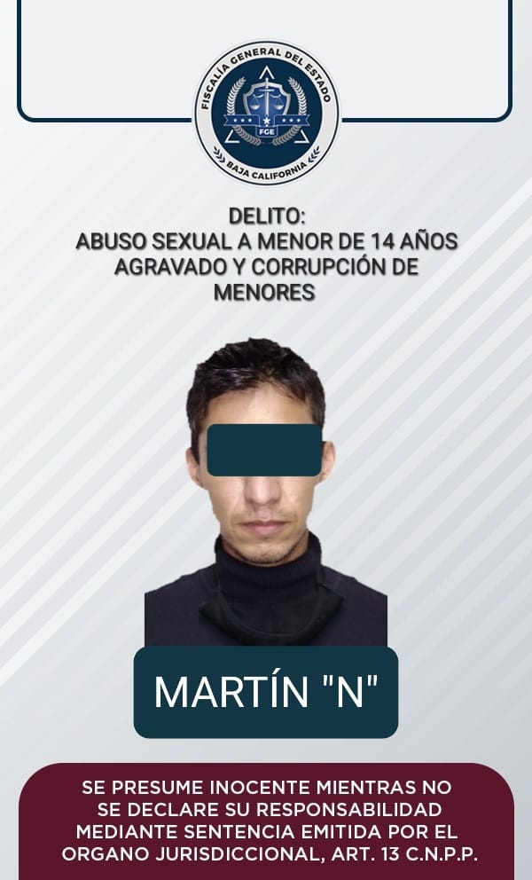 La Fiscalía General de Baja California capturó en Mazatlán, Sinaloa, a un sujeto que contaba con orden de aprehensión en Ensenada por el delito de abuso sexual a menor de catorce años agravado por razón de confianza, y corrupción de menores agravada.