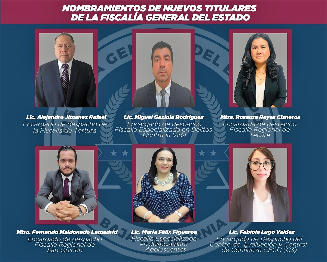 De igual forma, el Licenciado en Derecho por la UABC, Miguel Ángel Gaxiola Rodríguez, estará como encargado de despacho en la Fiscalía Especializada en Delitos Contra la Vida, su experiencia en el área desde 1996 lo avalan ya que, como resultado a su buen desempeño, ha ocupado el cargo de Auxiliar Administrativo, Secretario de Acuerdos, Agente del Ministerio Público y Coordinador de la Unidad, todos estos cargos en el área de Homicidios.