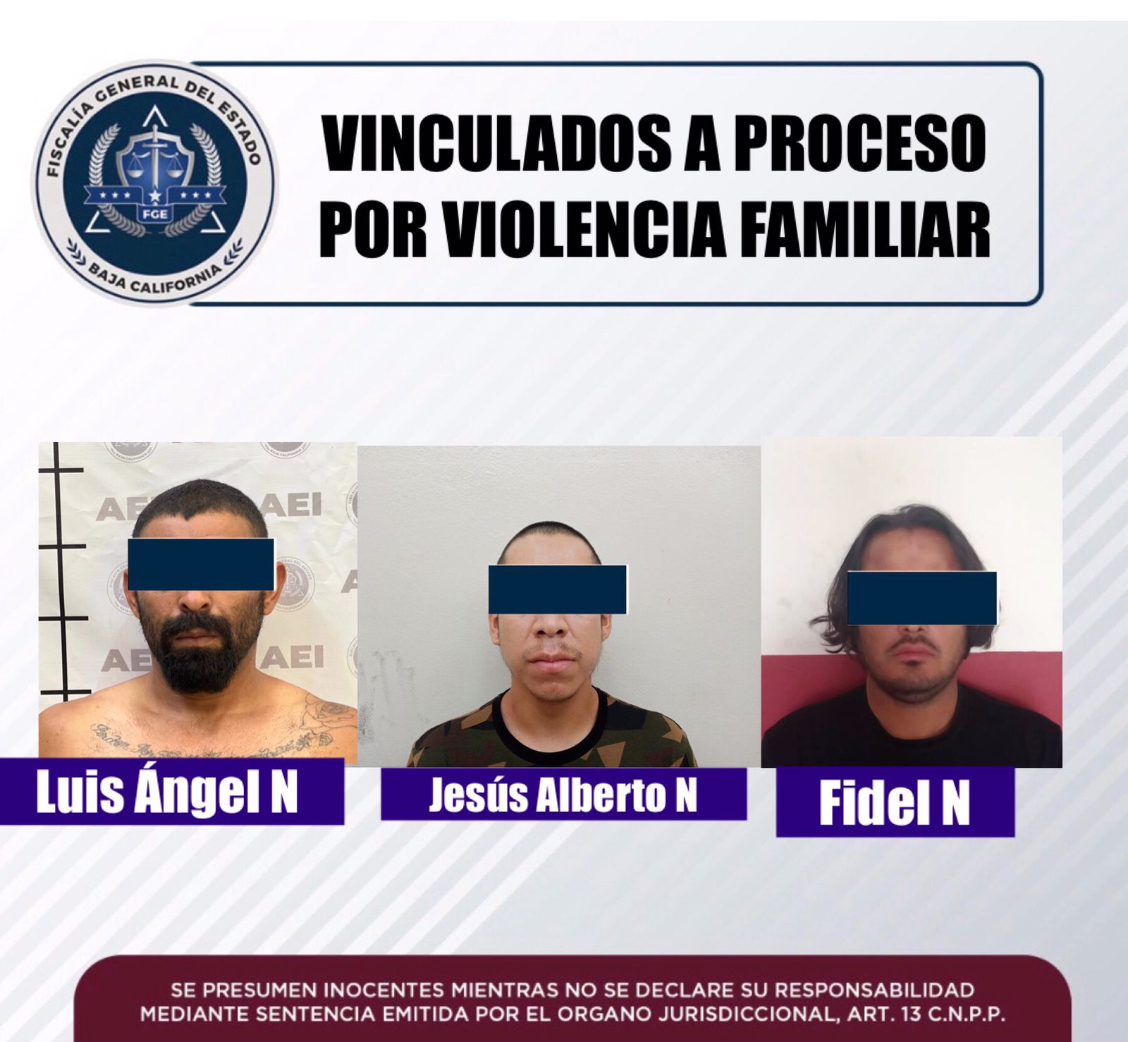La Fiscalía Regional de Mexicali, a través de la Unidad de Investigación con Detenidos Poniente, logró vincular a proceso a tres hombres acusados de agredir a sus familiares, además del plazo de dos meses para el cierre de la investigación.