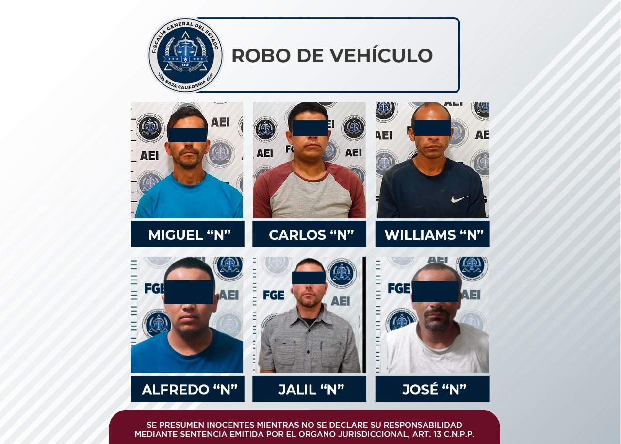 Por tener cuentas pendientes ante la justicia, elementos de la Agencia Estatal de Investigación de la Fiscalía General del Estado, cumplimentaron, en acciones distintas, seis órdenes de aprehensión por el delito de robo de vehículo.