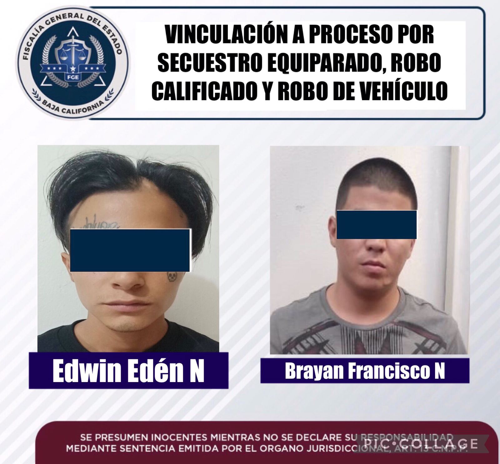 La Fiscalía General del Estado de Baja California, a través de la Unidad de Investigación Especializada de Combate al Secuestro, logró la vinculación a proceso de dos sujetos por el delito de secuestro equiparado, robo calificado cometido con violencia por dos personas y robo de vehículo.
