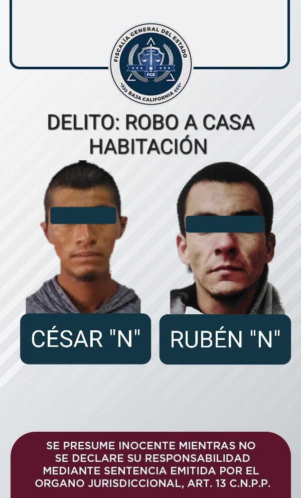 La Fiscalía Regional de Ensenada, a través de la labor del Ministerio Público y la Agencia Estatal de Investigación, ejerció acción penal en contra de tres hombres en distintos casos por el delito de robo.