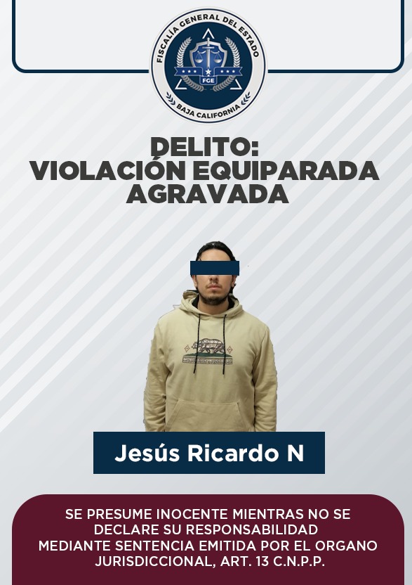 Resultado de las labores de coordinación entre autoridades de México y Estados Unidos, fue posible la detención de Jesús Ricardo N, por su presunta comisión en el delito de violación equiparada agravada.