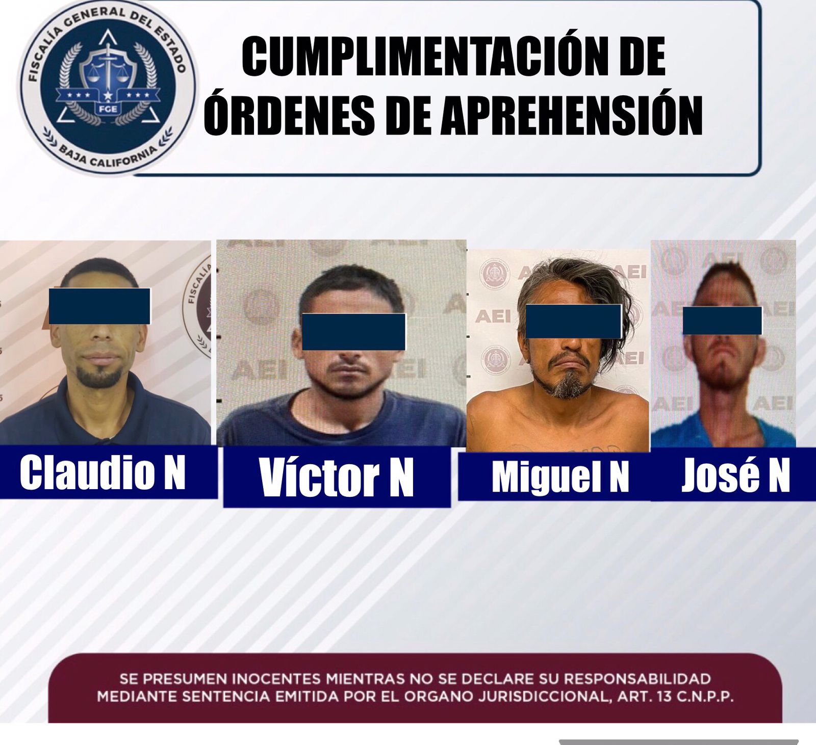 La Fiscalía Regional de Mexicali a través de las acciones realizadas por la Agencia Estatal de Investigación, logró la cumplimentación de cuatro órdenes de aprehensión a igual número de personas, por casos distintos.