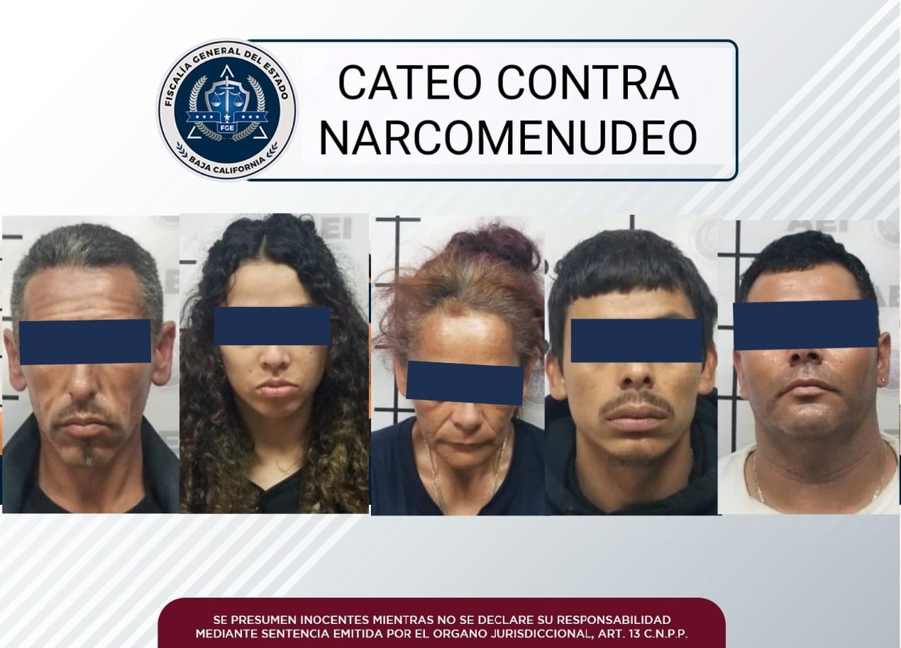 Cinco presuntos narcomenudistas quedaron bajo arresto durante cateo contra narcomenudeo en Ensenada: FGE