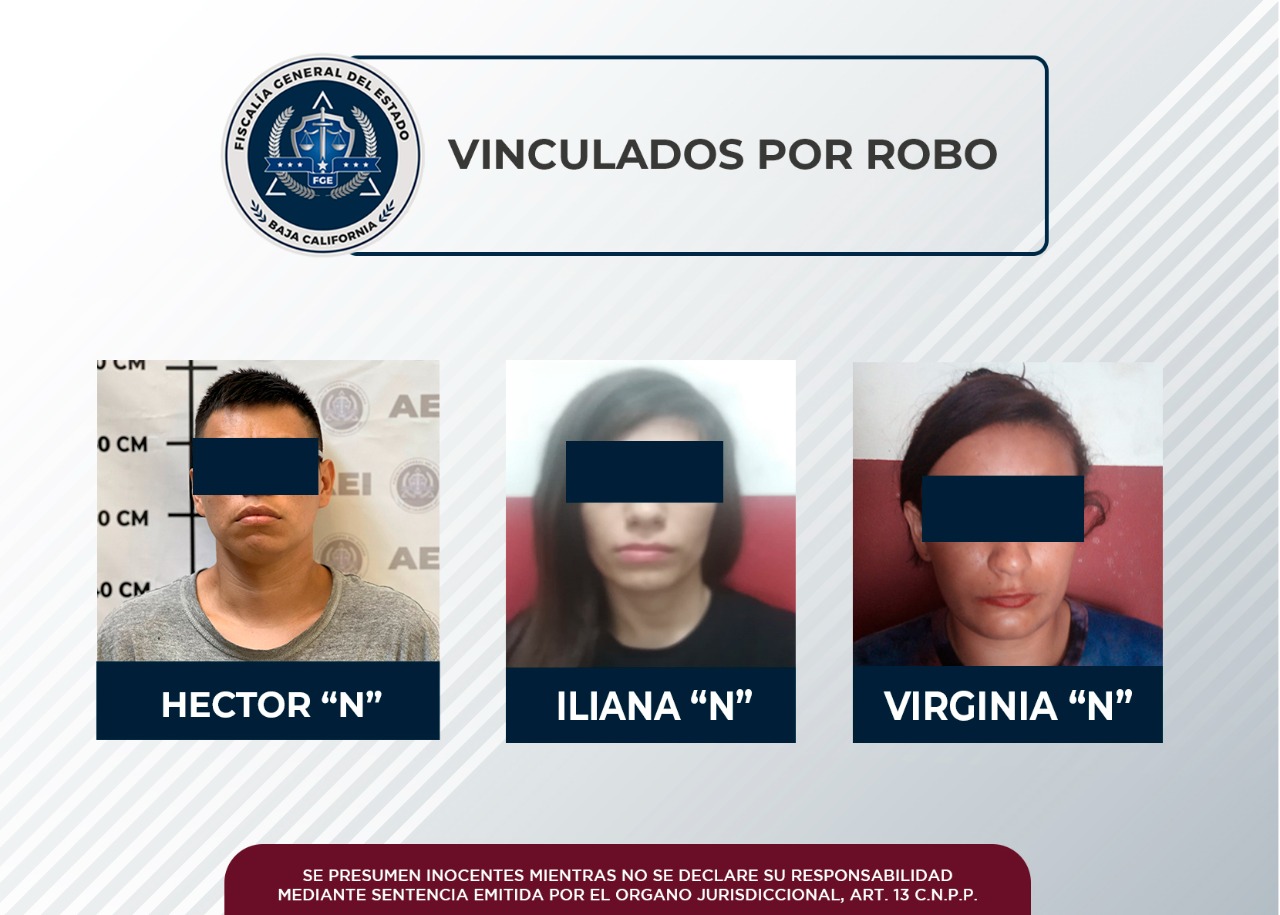 La Fiscalía Regional de Mexicali, a través de la Unidad de Investigación de Delitos con Detenido Poniente, logró vincular a proceso en audiencias por separado a tres imputados por robos.