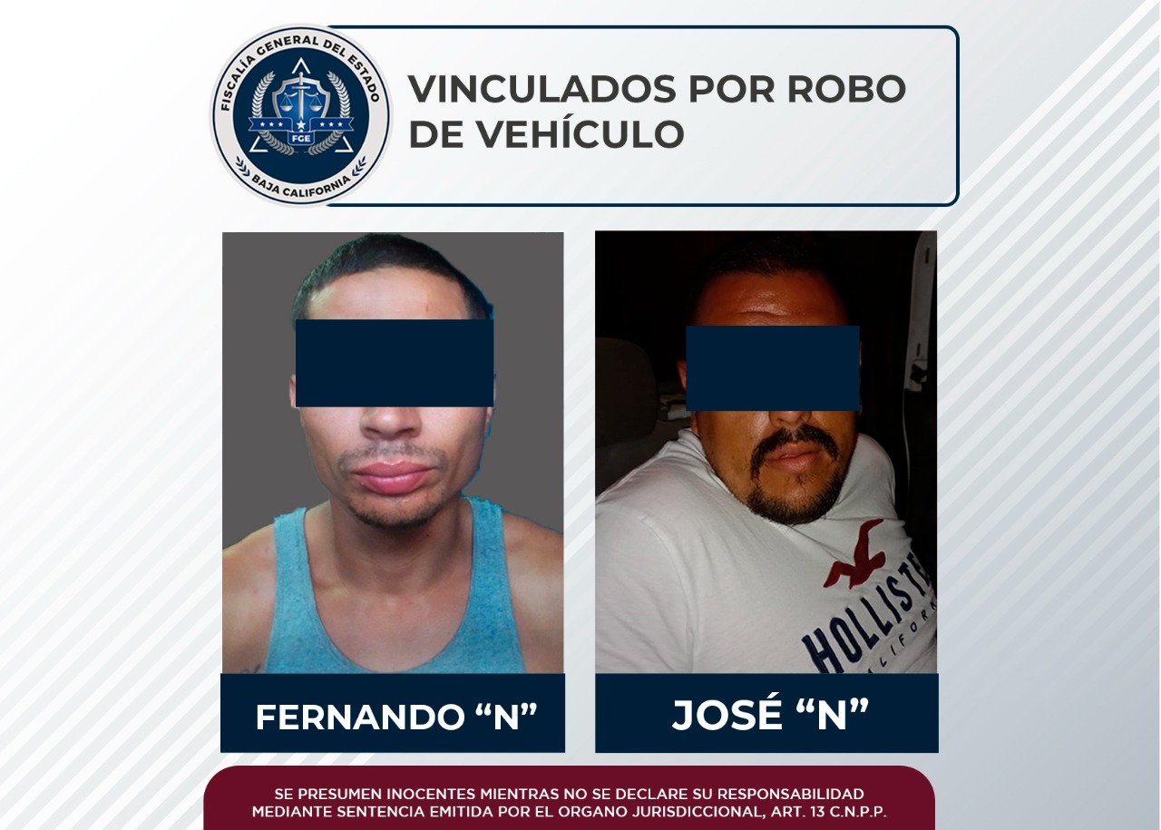 La Fiscalía Regional de Mexicali, a través de la Unidad de Investigación Foránea de Ciudad Morelos y de la Unidad de Investigación de Robo de Vehículos, logró en audiencias diversas la vinculación de dos acusados de delito de robo equiparado de vehículo de motor en su modalidad de posesión.
