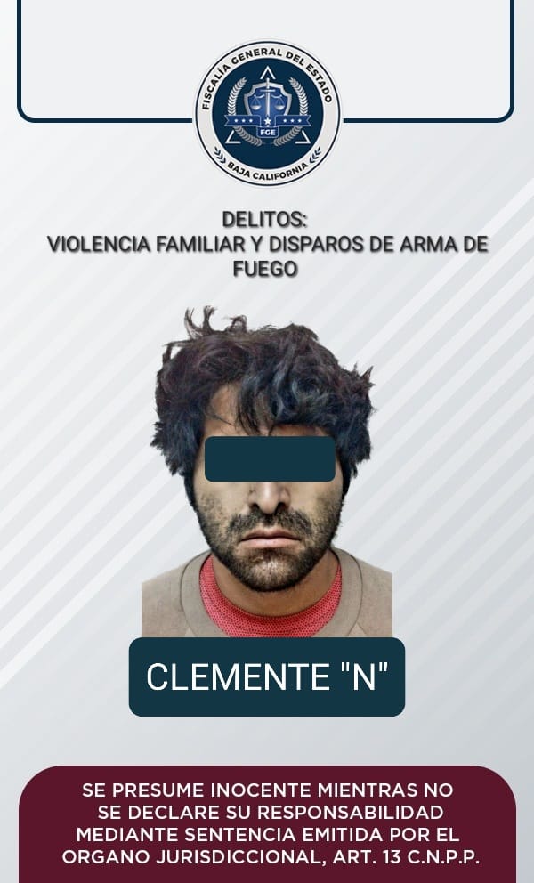 La Fiscalía Regional de Ensenada logró la vinculación a proceso de Clemente “N” por los delitos de violencia familiar, en agravio de su esposa, y disparos de arma de fuego sobre personas, en perjuicio de policías municipales.