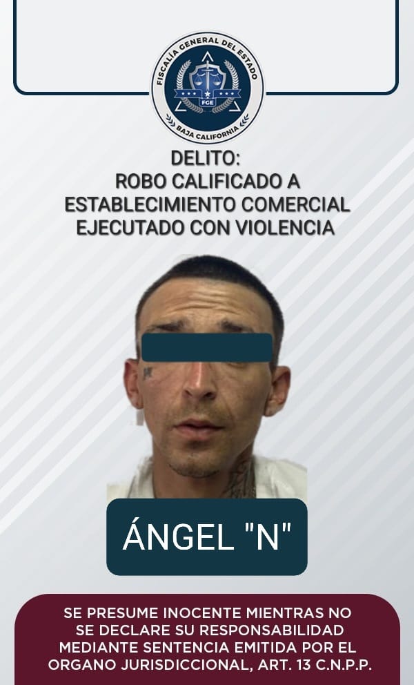 La Fiscalía Regional de Ensenada, a través de elementos de la Agencia Estatal de Investigación (AEI), cumplimentó dos órdenes de aprehensión contra Ángel “N”, alias “el Demer”, por su presunta participación en dos robos con violencia cometidos en mayo de este año en tiendas Oxxo.