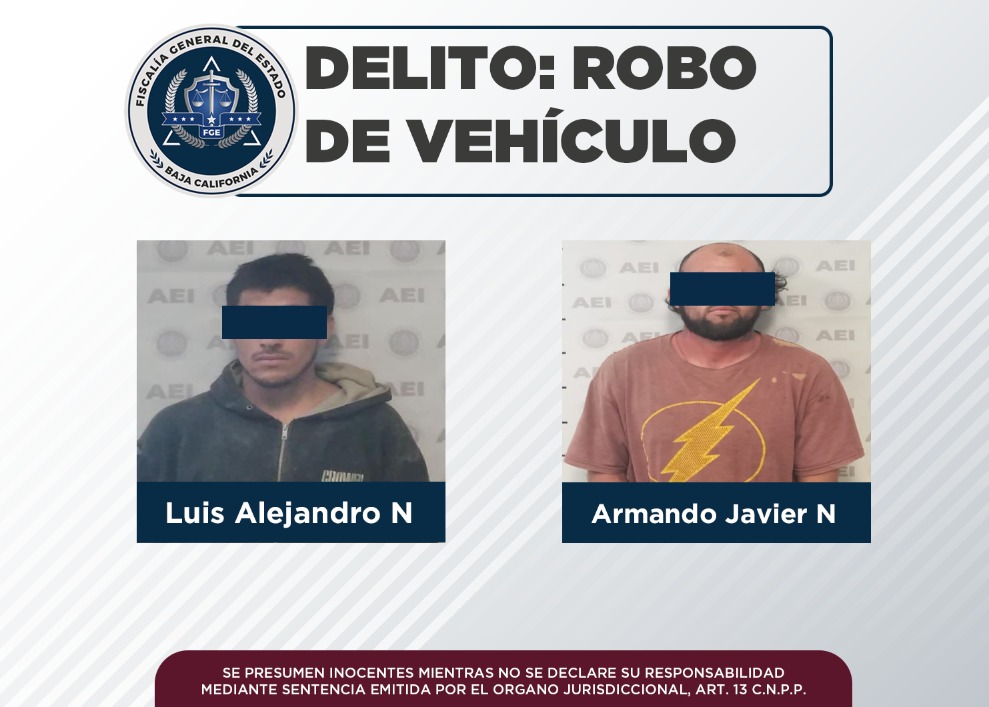 Como resultado de las indagatorias y las labores de inteligencia que realizan elementos de la Agencia Estatal de Investigación (AEI) de la Fiscalía Regional de Tecate, se logró, en hechos distintos, la captura de dos hombres que contaban con un mandato judicial activo en su contra por el delito de robo de vehículo.