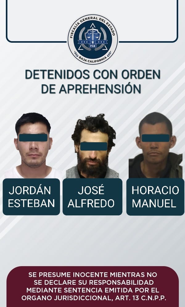La Fiscalía Regional de Ensenada a través de la Agencia Estatal de Investigación (AEI), en diversos casos, cumplimentó órdenes de aprehensión contra tres imputados por los delitos de robo calificado a casa habitación y portación de arma prohibida.
