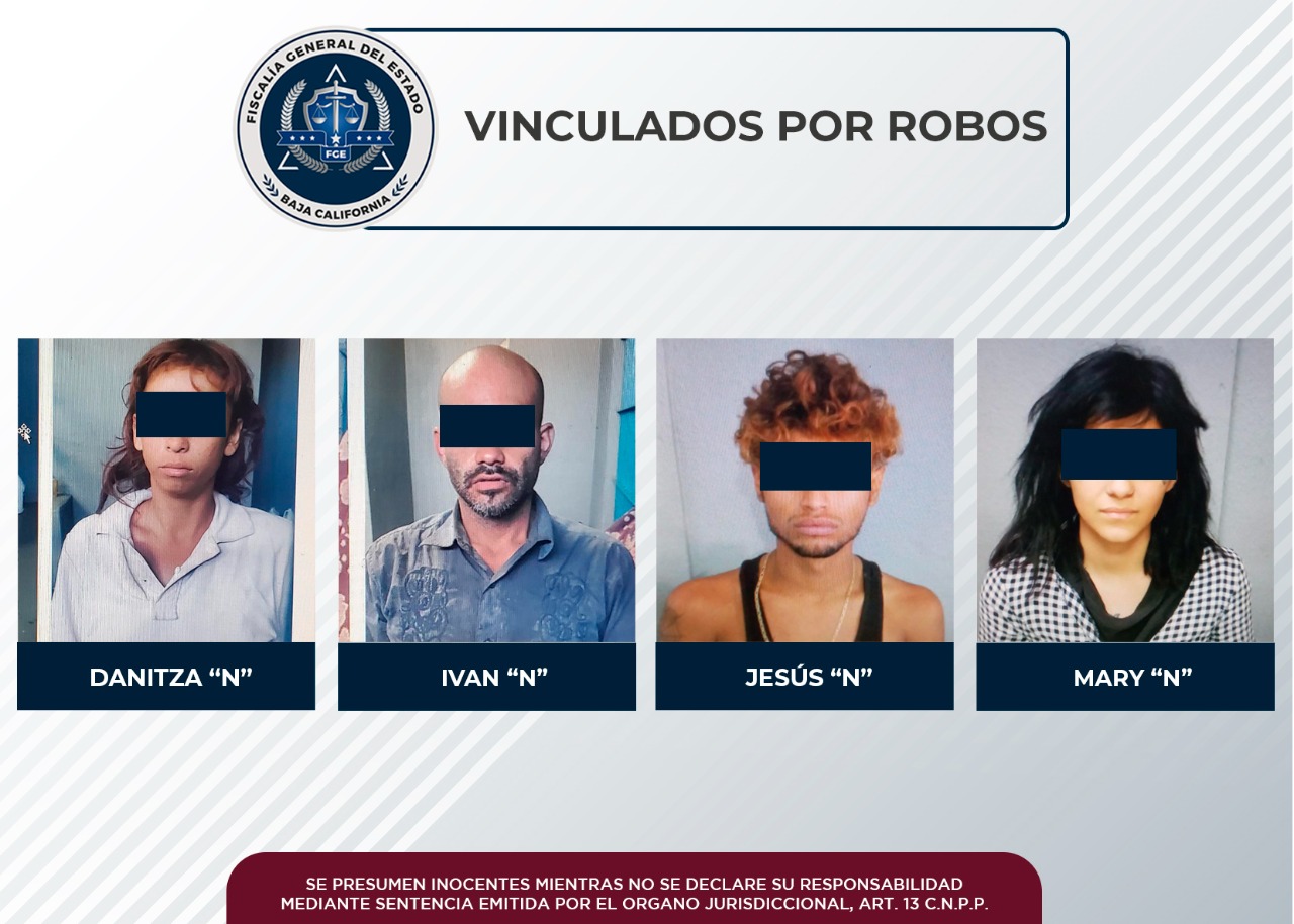 La Fiscalía Regional de Mexicali, logró con base a las pruebas presentadas por el agente del Ministerio Público de la Unidad de Investigación Foránea de Ciudad Morelos, la vinculación de dos parejas relacionadas en robos registrados en los ejidos México y Colima.