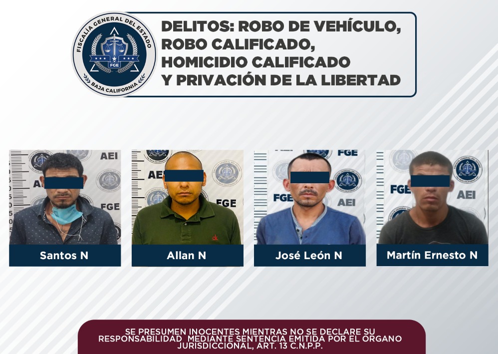 Por contar con mandatos judiciales activos, elementos de la Agencia Estatal de Investigación (AEI), de la Fiscalía General del Estado (FGE), lograron en acciones distintas la captura de cuatro sujetos que contaban con orden de aprehensión por diferentes delitos.