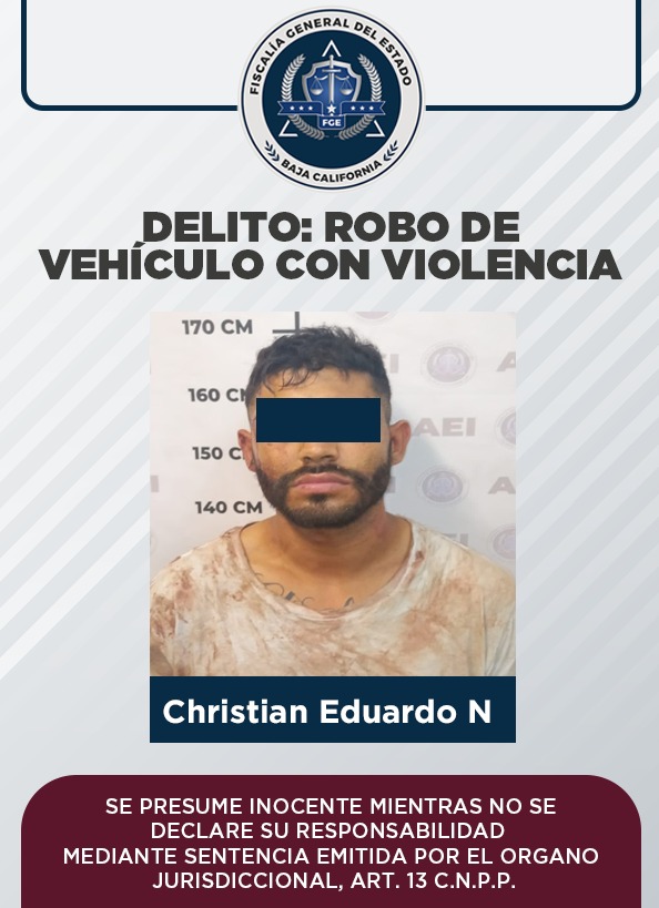 La Fiscalía Regional de Tijuana, a través los datos de prueba aportados por el Ministerio Público, logró que un Juez de Control dictara auto de vinculación a proceso en contra de un hombre por ser probable responsable en el delito de robo de vehículo con violencia.