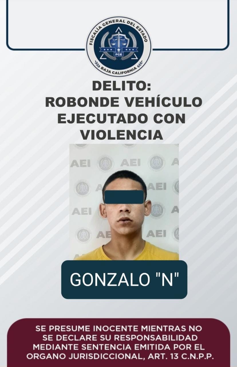 La Fiscalía Regional de Ensenada logró la vinculación a proceso de Gonzalo “N”, por su presunta participación en el asalto cometido en junio del año en curso en perjuicio de un taxista que fue despojado de su vehículo y dinero en efectivo.