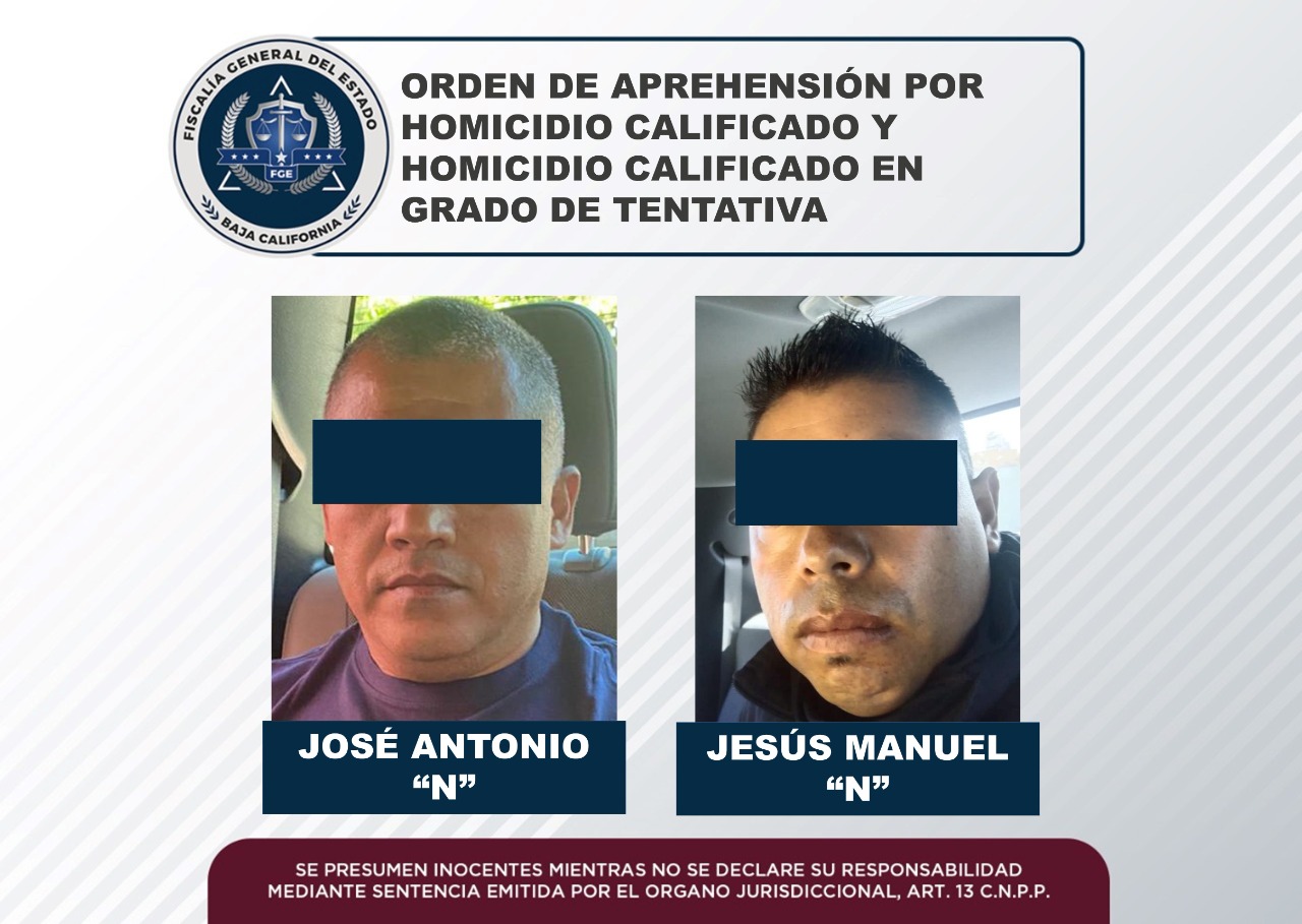 Como resultado de los nuevos esquemas de coordinación que se han planteado en las mesas de seguridad, este miércoles se cumplimentó una orden de aprehensión en contra de Jesús Manuel “N” y José Antonio “N”, por ser señalados como presuntos responsables de los delitos de homicidio calificado y homicidio calificado con ventaja en grado de tentativa. Los dos son elementos de la Policía Municipal de Tijuana.