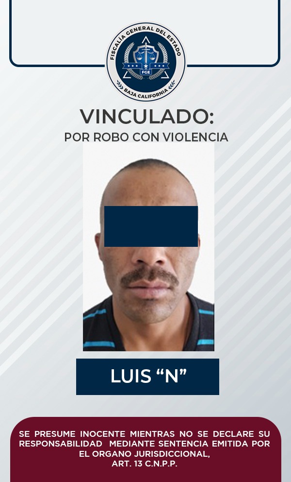 La Fiscalía Regional de Mexicali, a través de la Unidad de Investigación de Robos Poniente, logró con base a las pruebas y argumentos presentados, la vinculación a proceso y la medida cautelar de prisión preventiva oficiosa, en contra de un imputado por robo con violencia.