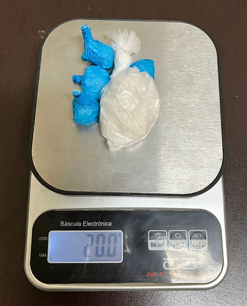 Como resultado de esta diligencia se detuvo en el lugar al de nombre José Armando N, a quien se le decomisó una bolsa de plástico transparente conteniendo en su interior una sustancia granulada al parecer cristal, así como 4 envoltorios de plástico color azul con la misma sustancia.