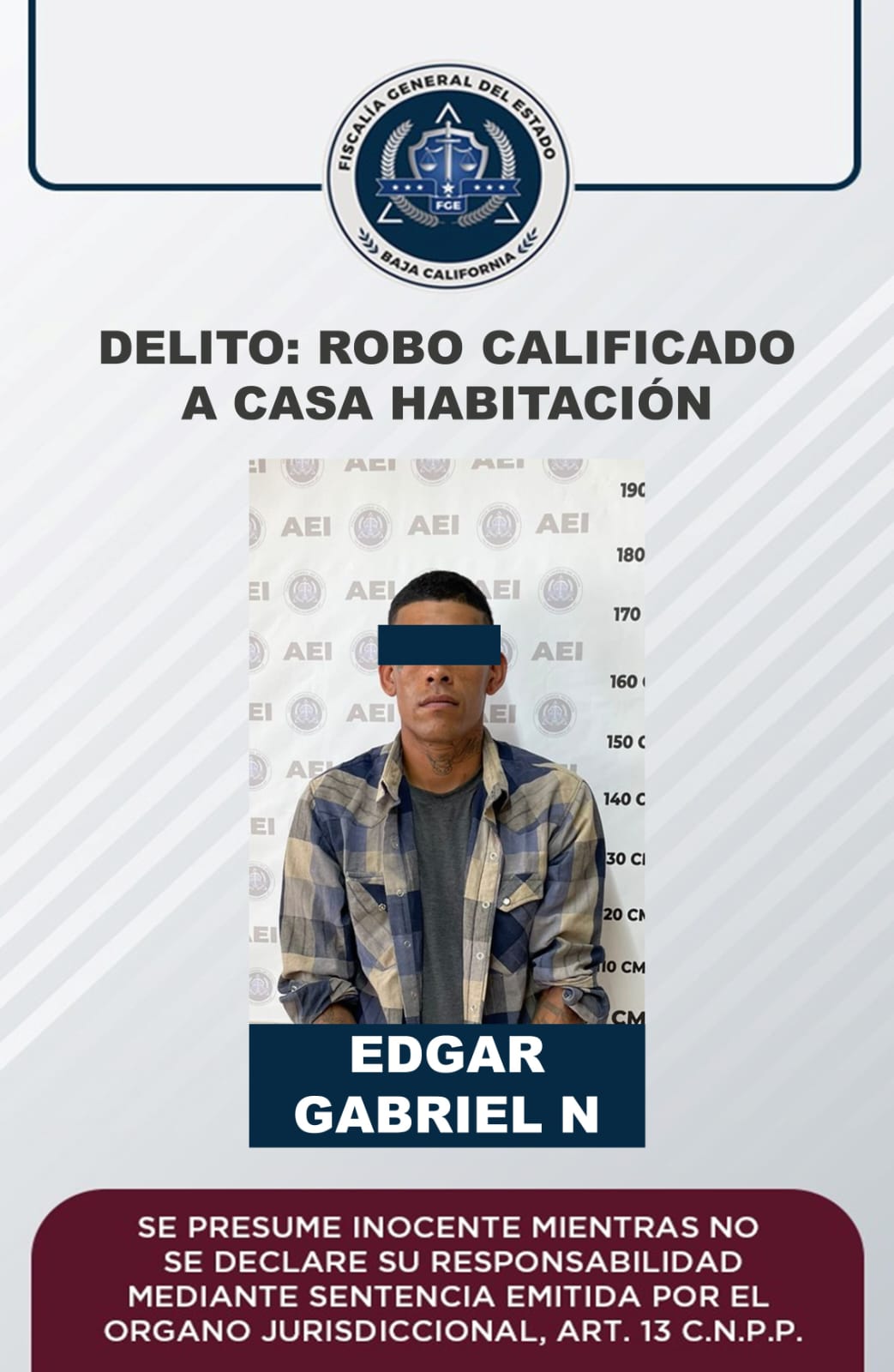 Por el delito de robo calificado a casa habitación, agentes de la Fiscalía General del Estado cumplimentaron orden de aprehensión a Edgar Gabriel “N”, de 32 años de edad.