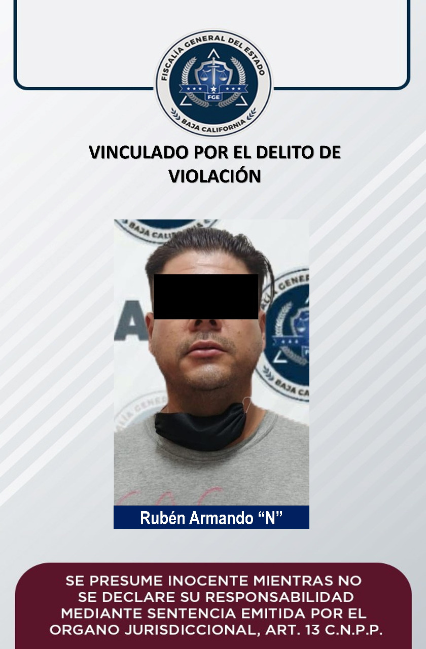 La Fiscalía General del Estado obtuvo la vinculación a proceso en contra de Rubén Armando “N” por el delito de violación, ilícito ocurrido en el mes de julio de 2022.