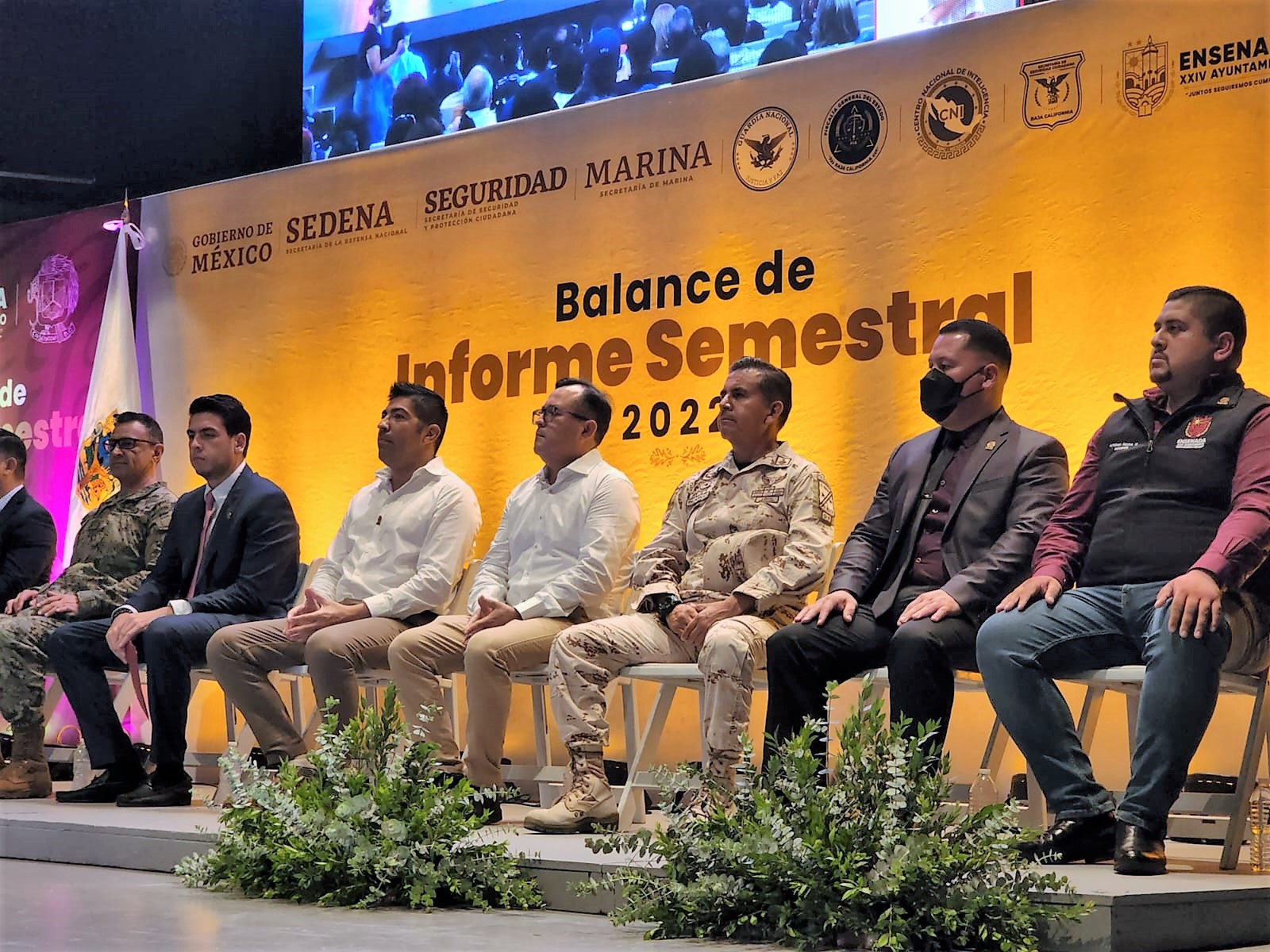 En el presídium estuvieron el Secretario de la Mesa de Seguridad, Yonti Orozco; el Director de Seguridad Pública Municipal, David Armando Sánchez González; El Comandante de la Guarnición Militar de El Ciprés, General Homero Blanco, el Diputado Federal, Isaías Bertín Sandoval y personal de la Secretaría de Marina Armada de México.