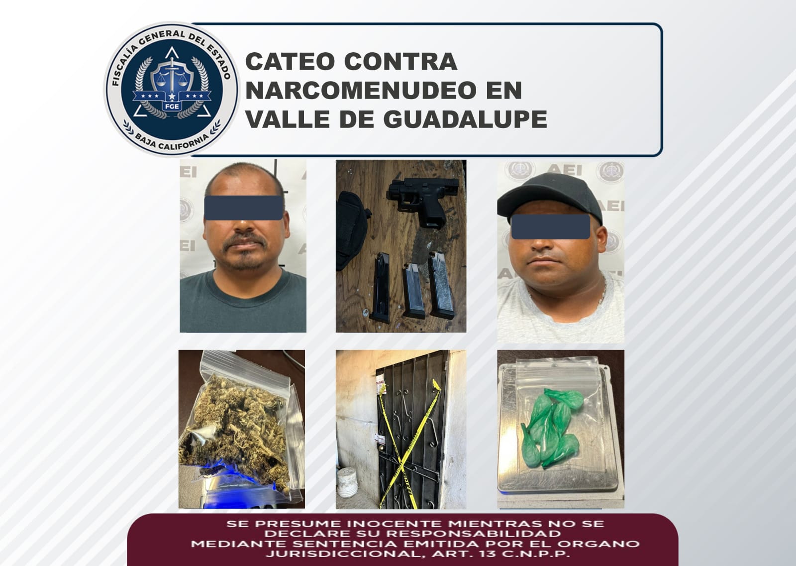 Agentes Investigadores de la FGE ponen bajo arresto a dos sujetos armados y con narcóticos en Valle de Guadalupe