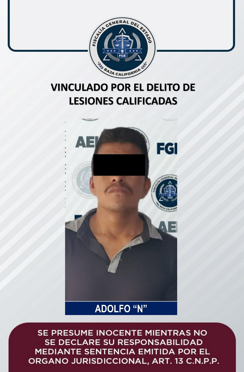 La Fiscalía Regional de Mexicali obtuvo auto de vinculación a proceso penal en contra de un hombre acusado del delito de lesiones calificadas.
