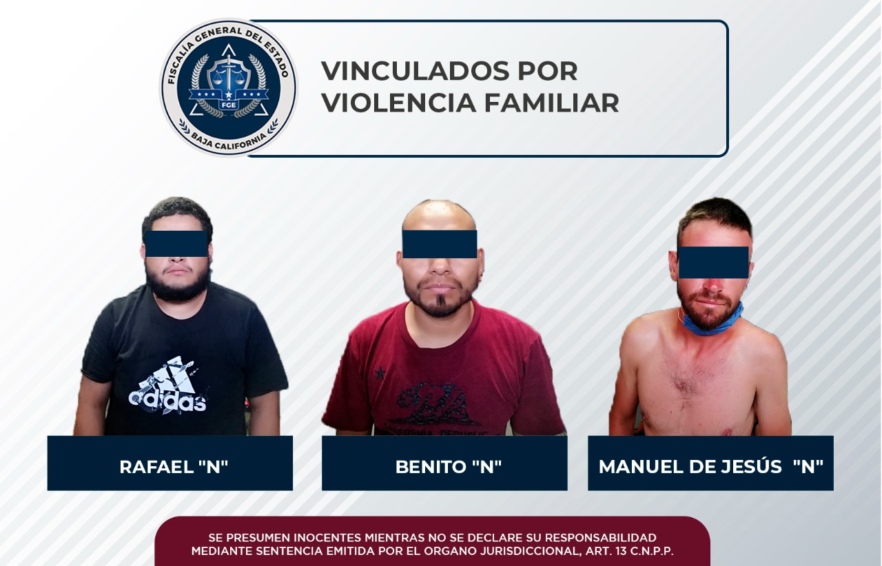 Tres acusados de agredir a sus familiares, fueron vinculados a proceso, con base a las pruebas presentadas por la Fiscalía Regional de Mexicali, a través de la Unidad de Investigación Foránea de Ciudad Morelos.
