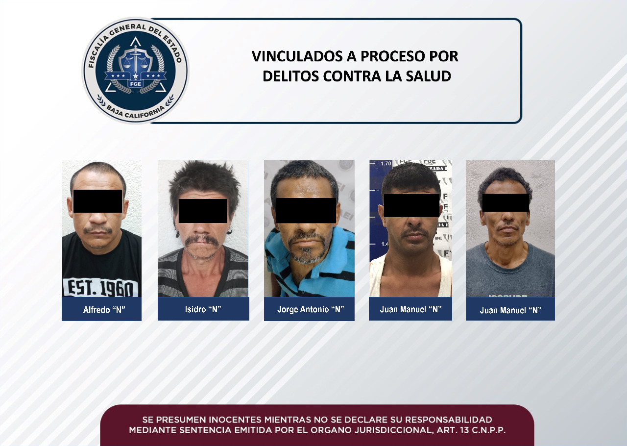 La Fiscalía General del Estado (FGE), implementa acciones operativas en contra del narcomenudeo a fin de sacar de las calles a los individuos que se dedican a la venta y distribución de droga, en esta ocasión se obtuvo la vinculación a proceso de cinco sujetos por delitos de contra la salud, en audiencias por separado.