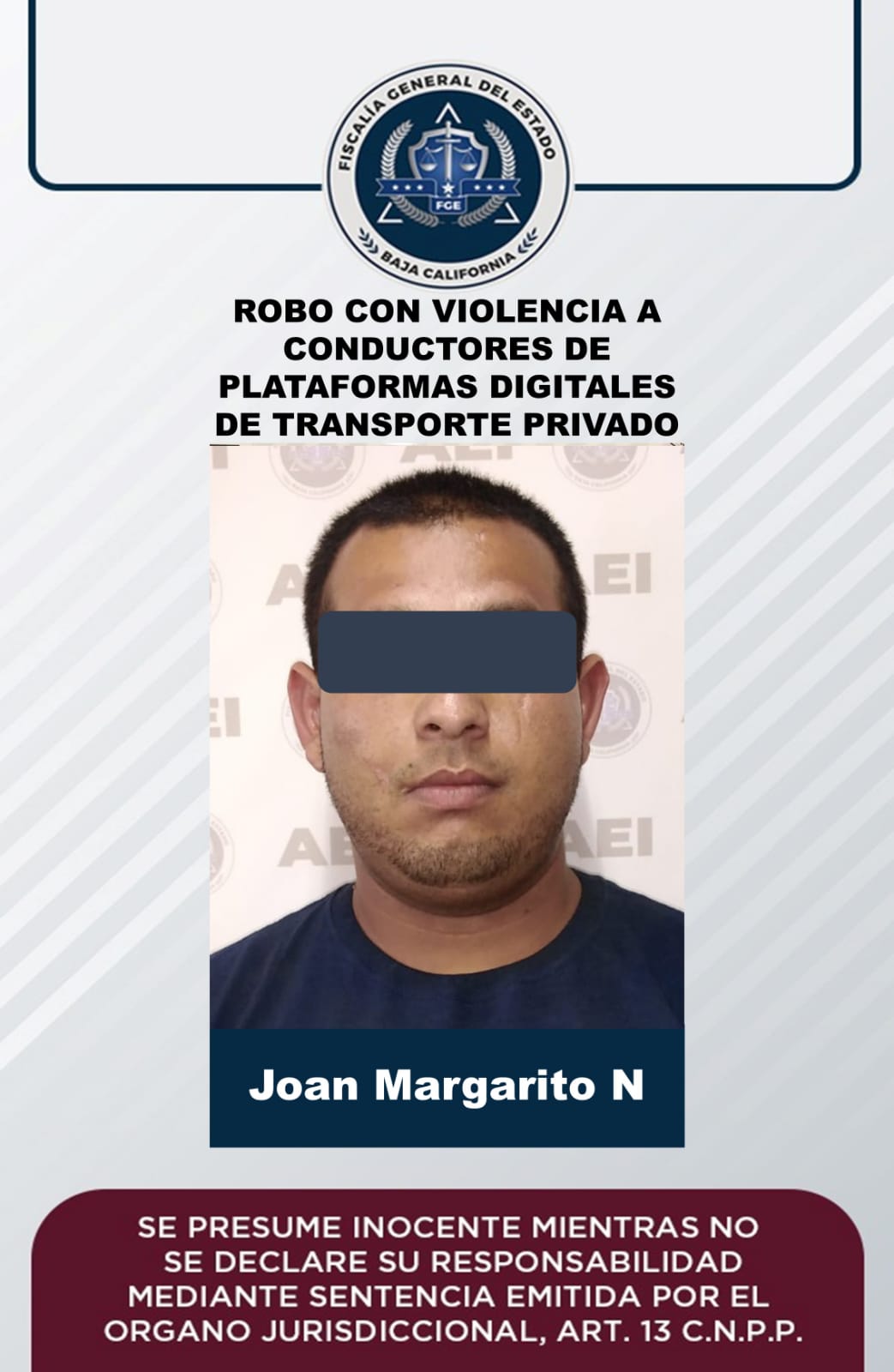 Derivado de indagatorias efectuadas por elementos de la Fiscalía Regional adscritos a la Unidad de Investigación de Robos, se estableció la presunta participación de Joan Margarito “N”, en los delitos de robo de vehículo de motor, robo con violencia y robo calificado cometido por dos o más personas, en agravio de tres conductores de distintas plataformas en el puerto.