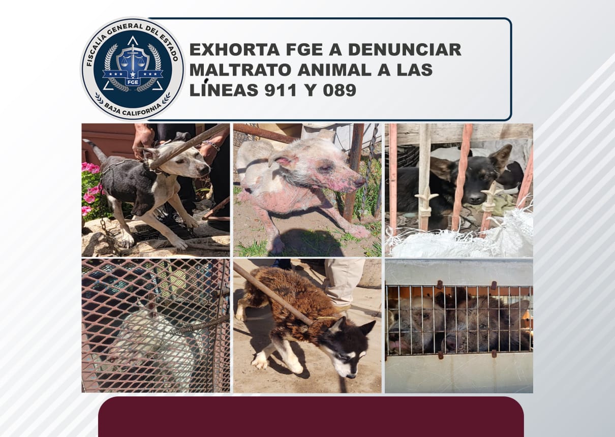 Con el objetivo de consolidar la investigación especializada y ejercer justicia contra el maltrato animal en Baja California, la Fiscalía General del Estado hace un llamado a denunciar actos de crueldad que causen muerte intencional, dolor innecesario, tortura o mutilación contra los animales.