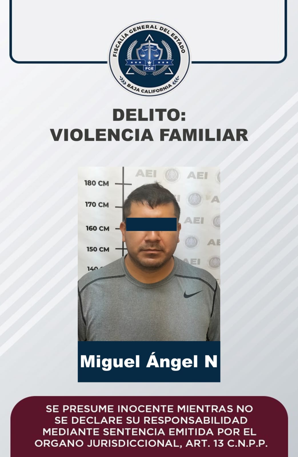 Por medio de datos de prueba, la Fiscalía Regional de Ensenada logró la vinculación a proceso de Miguel Ángel “N”, de 38 años de edad, detenido en flagrancia por el delito de violencia familiar y lesiones agravadas por razón de parentesco.