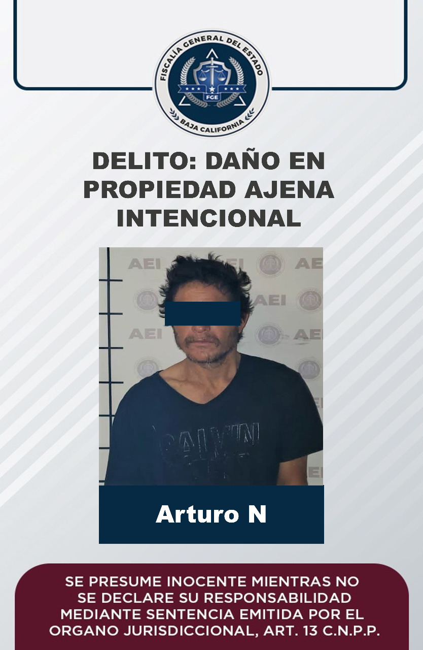 La Fiscalía Regional de Tecate, a través de las pruebas presentadas por el agente del Ministerio Público ante el Juez de Control, obtuvo vinculación a proceso en contra de Arturo “N” por su probable comisión en el delito de daño en propiedad ajena intencional.