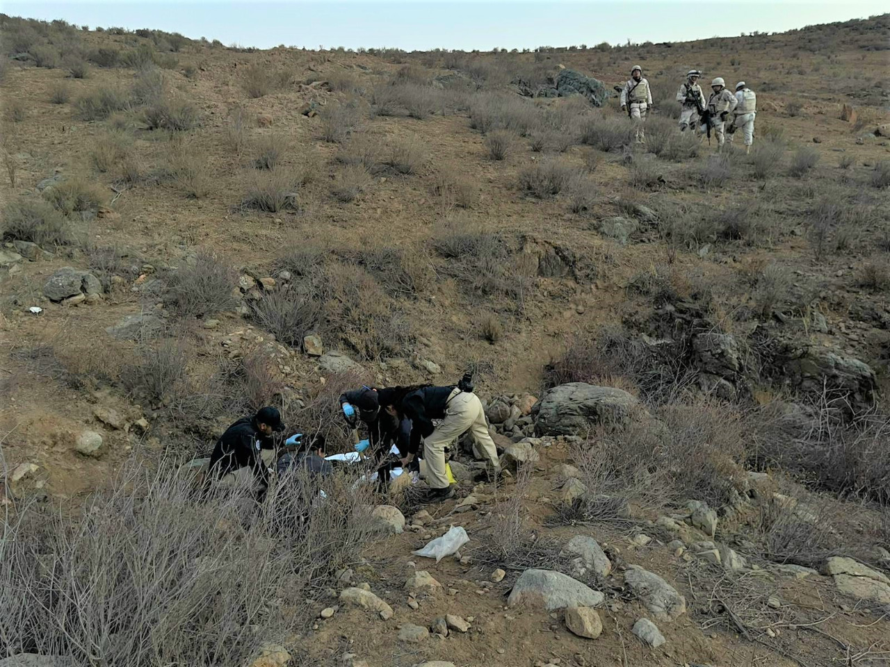 Asimismo, personal de la Comisión de Búsqueda encontró una osamenta a dos kilómetros y medio del punto de reunión, en el área del cerro.