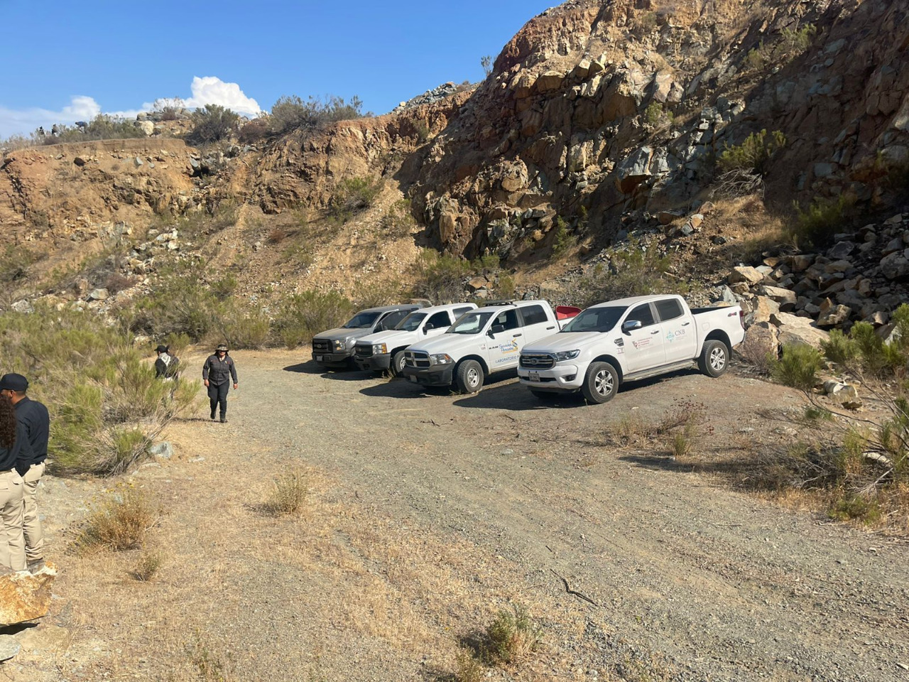 En estos trabajos participaron agentes de investigación del grupo de Búsqueda de Personas y Desaparición Forzada Zona Tijuana, el agente canino Falco de la Agencia Estatal de Investigación, elementos de la Guardia Nacional, personal de la Comisión Estatal de Búsqueda, así como diversos colectivos siendo los siguientes: