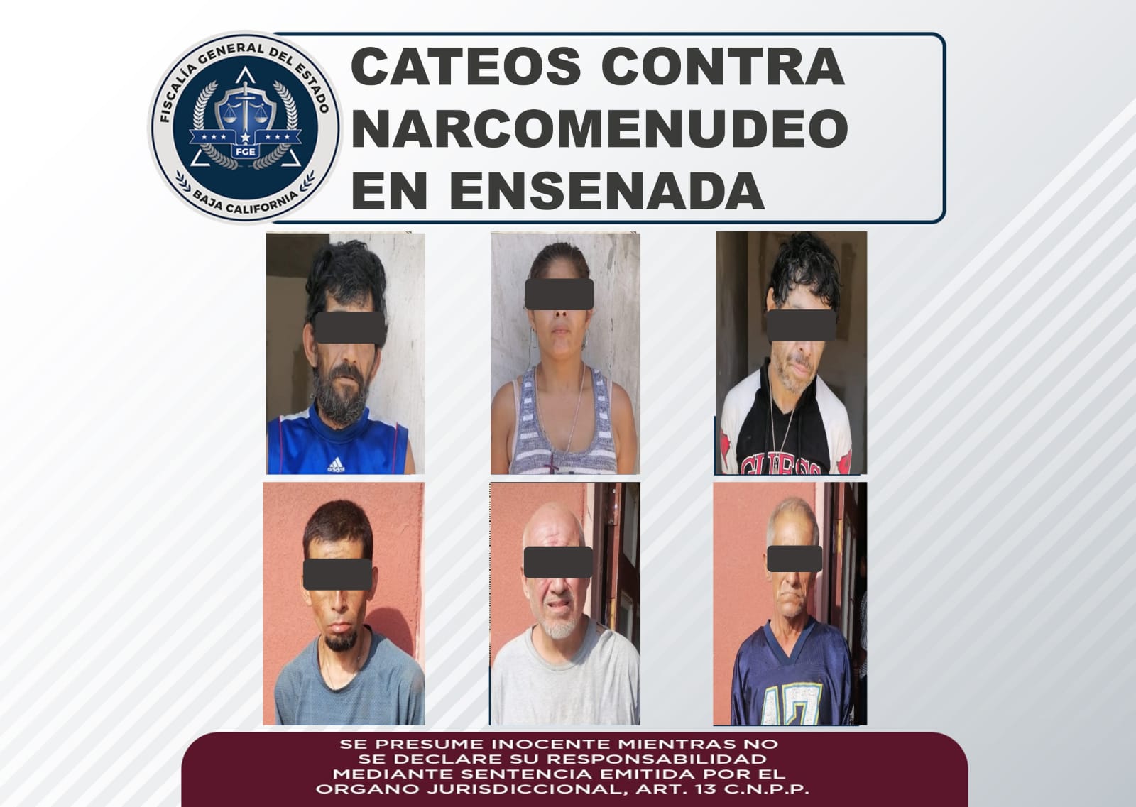 Agentes de la Fiscalía General de Baja California, cumplimentaron tres órdenes de cateo que culminaron en la detención de seis personas y el aseguramiento de los predios donde encontraron diversas sustancias ilícitas.