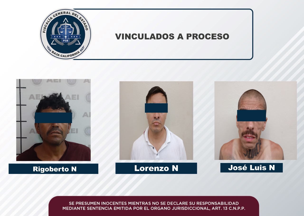 La Fiscalía Regional de Mexicali, logró la vinculación a proceso penal de tres hombres, lo anterior, como resultado de la integración de las carpetas de investigación a cargo de las Unidades con Detenidos Poniente y Oriente.